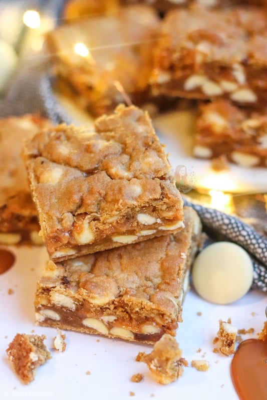 The idea of doing an alternative festive cookie bar to my Christmas cookie bars was just a little bit too exciting – but I wanted to take it up a notch and stuff them with caramel. This, is another request I have had for far too long so here they are!