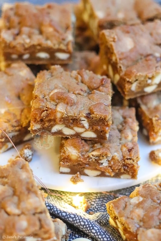 I just love the sweetness of the white chocolate in contrast to the ground ginger, ground cinnamon and ground nutmeg. I also find that white chocolate paired with caramel isn’t overpoweringly sweet and the chocolate doesn’t hide the caramel taste too.