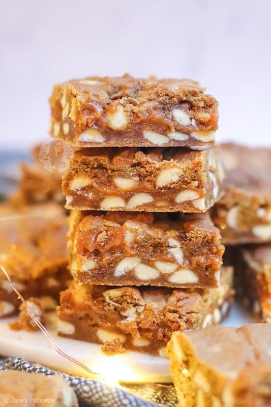 This is obviously the part where you bake the caramel gingerbread cookie bars – and it is worth the wait. Oh my daaaaays these caramel gingerbread cookie bars are INSANE. It honestly is best to let these cool fully in the tin, because when you portion them up you will see the sticky delicious caramel in the middle! Let me know if you try these beauties out in the comments – or tag me in a photo on social media!! I hope you love them! Jane x