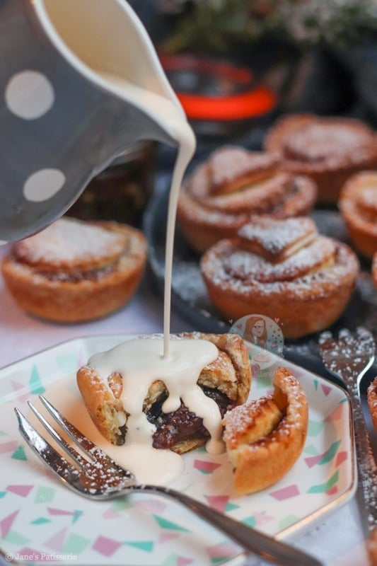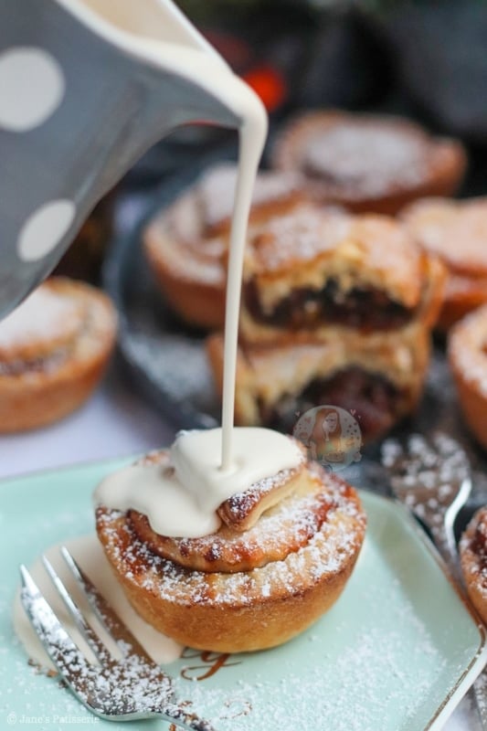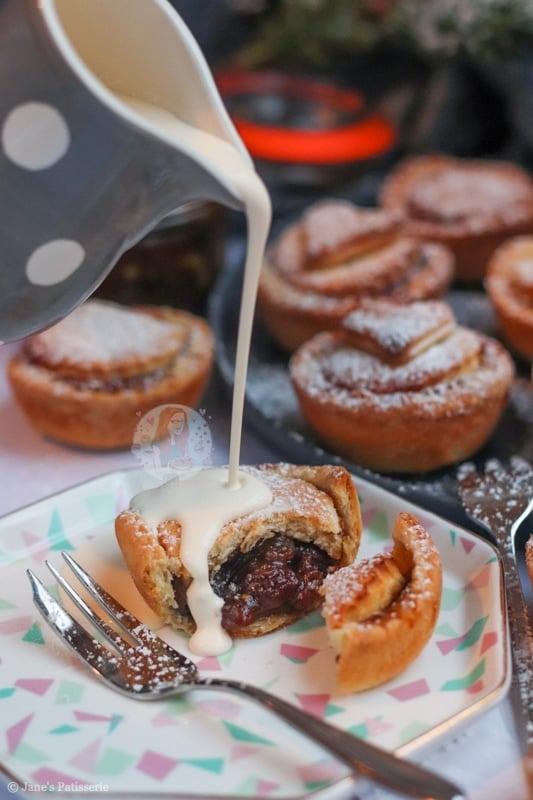 I love serving my mince pies with double cream, as it just looks so good, and it’s the classic serving choice for me – but you can use clotted cream, ice cream or even custard! It’s entirely up to you. Enjoy! x