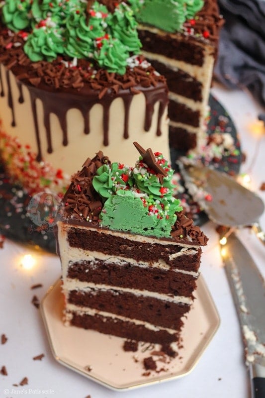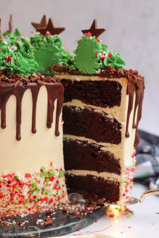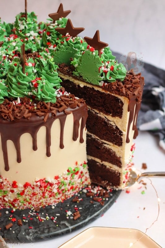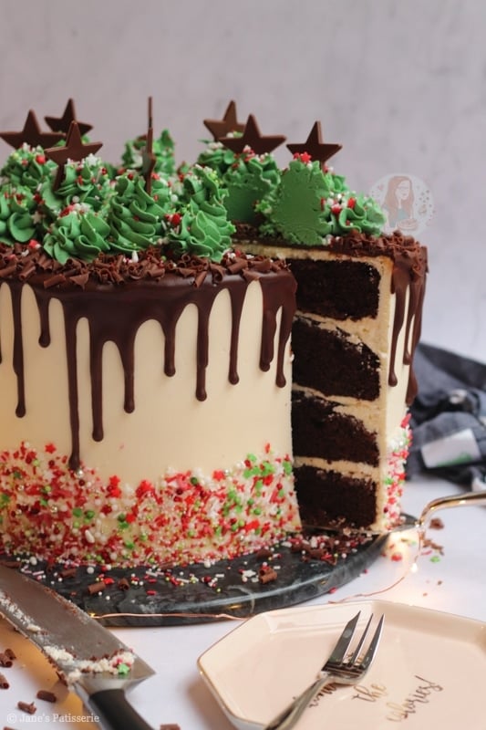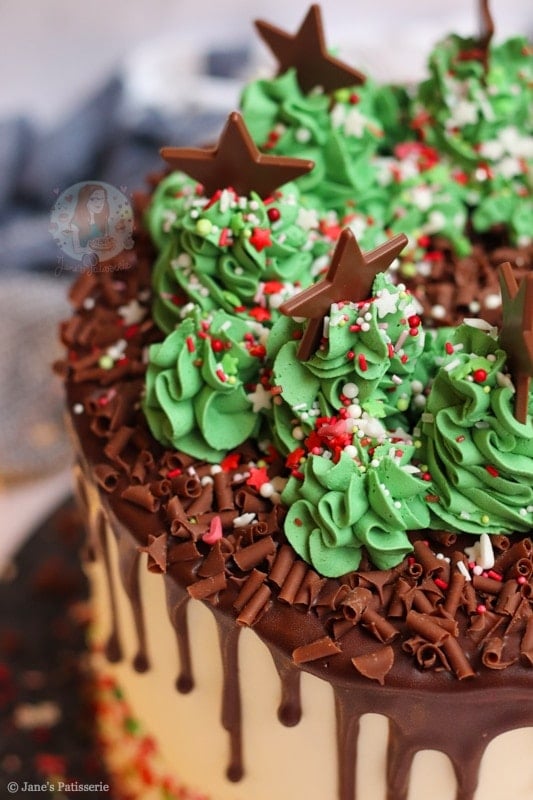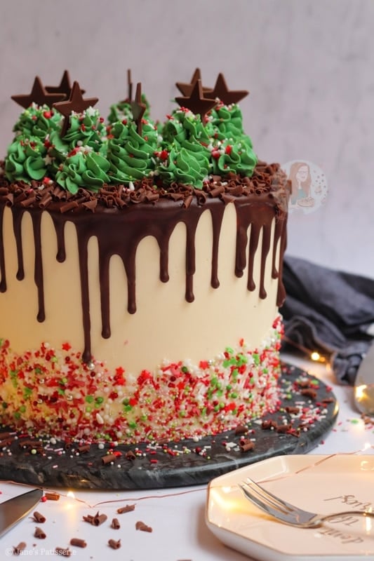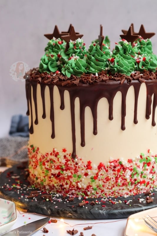 The final touch was some chocolate stars and a few more Christmas-like sprinkles for a bit of decoration. As over the top and showstopper as you can get – but an absolute favourite bake of mine. I hope you love it! Jane x