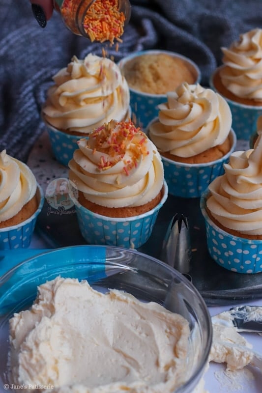 If you aren’t aware, swiss meringue buttercream is different from the normal American buttercream frosting of unsalted butter and icing sugar, and different again to cream cheese frosting. It is genuinely a swiss meringue turned into the buttercream.