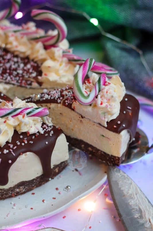 You can use mini candy canes, or whole candy canes – or even chop up whatever!! You basically need something candy cane themed to make sure this is a candy cane cheesecake, but you do you and use what you like! I hope you love this cheesecake. Enjoy! Jane x