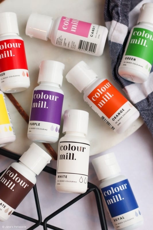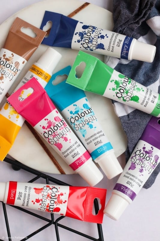 It’s best to stick to gel/oil based colours, and avoid any water based colours. Generally, they are too weak and can ruin a bake! If you have any questions leave them below!