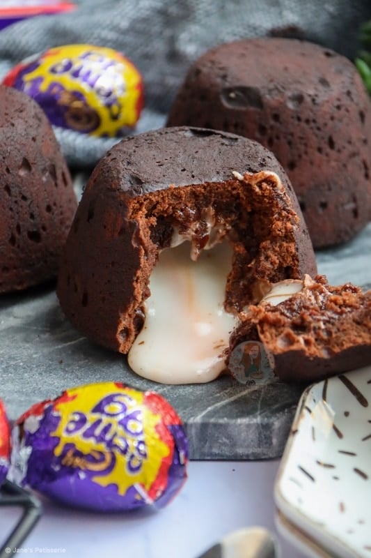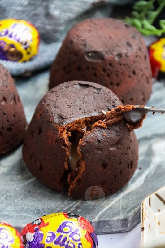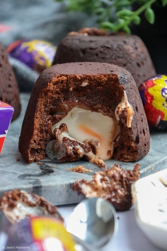 Delicious and super easy creme egg fondants with a chocolate fondant cake, stuffed with a molten creme egg centre.