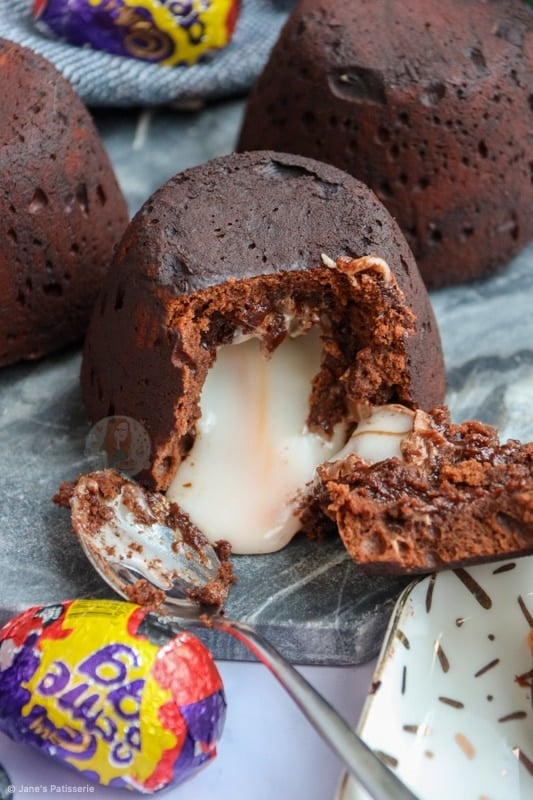 - You can substitute the creme eggs for caramel eggs, or anything soft-centered of a similar size (that has also been frozen prior to baking)