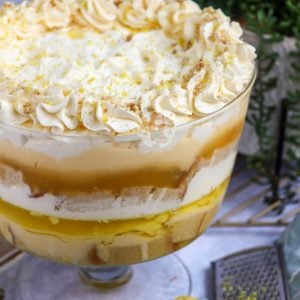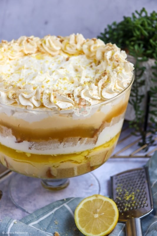 When I bake, I make so many different types of desserts, cakes, puddings, traybakes etc, with all different sorts of flavours and themes. I love this about what I do, and they are always recipes that you guys want to see – and this one is no different; a lemon trifle!