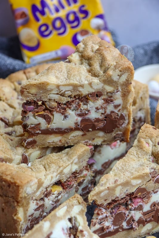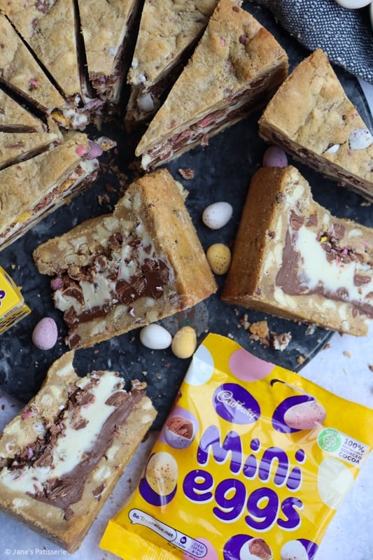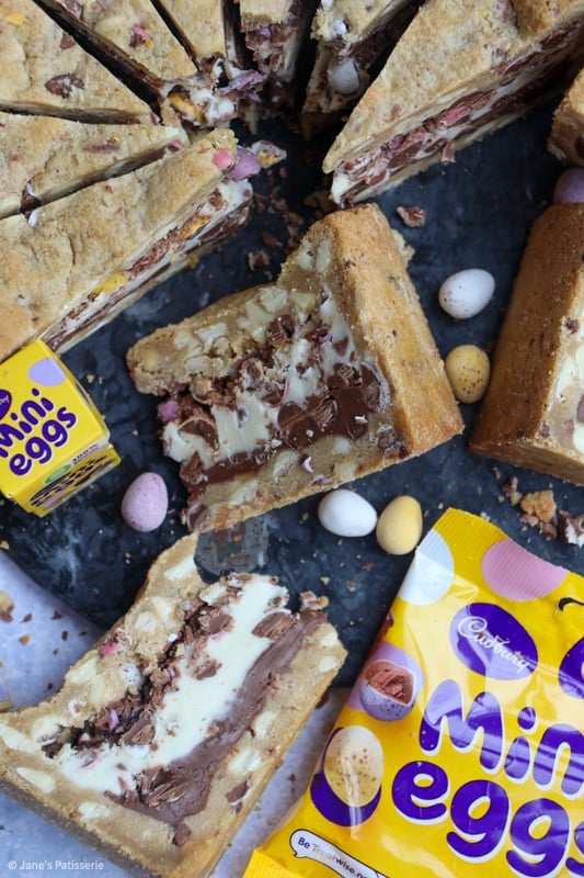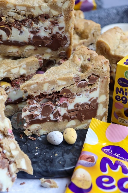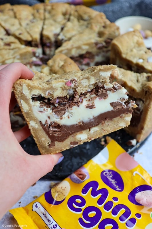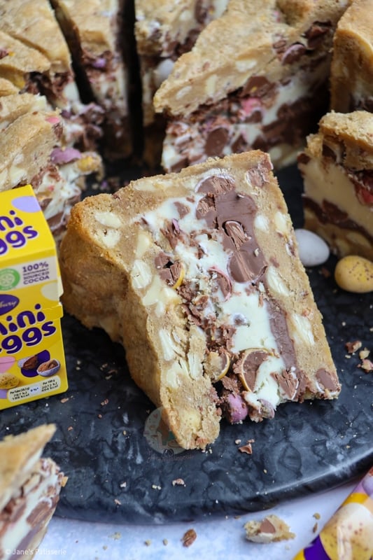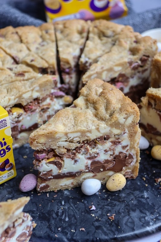 You can also use other easter themed chocolate, just any hard chocolate will do – you don’t want to use a soft centred chocolate for the cookie dough as it may ruin the shell of the cookie pie!