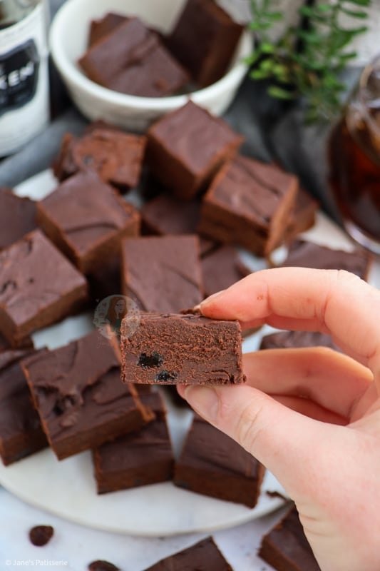 I have had a few people make the recipe by themselves using my baileys fudge as a base recipe, and that’s basically what I have done here too – it works, so why not?! It’s a deeply flavoured fudge, but it works so well.