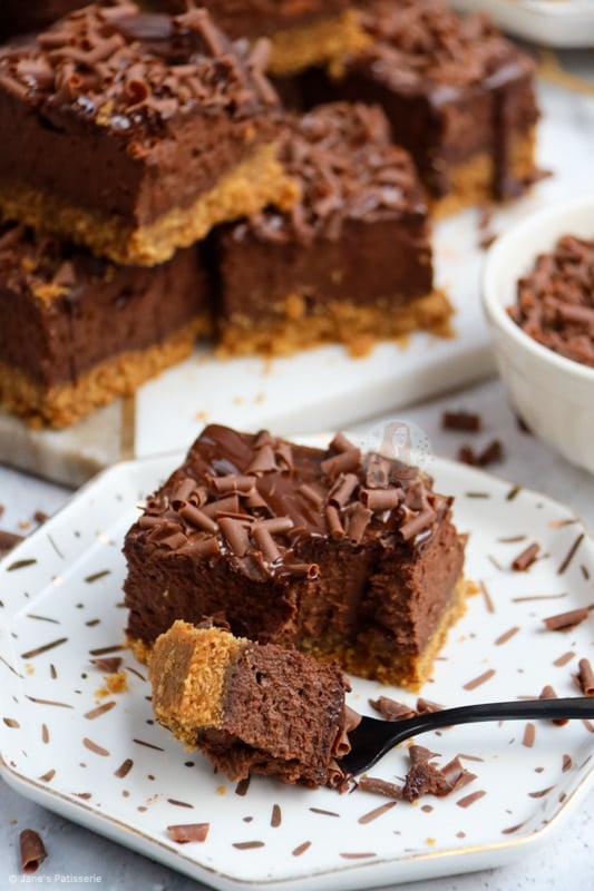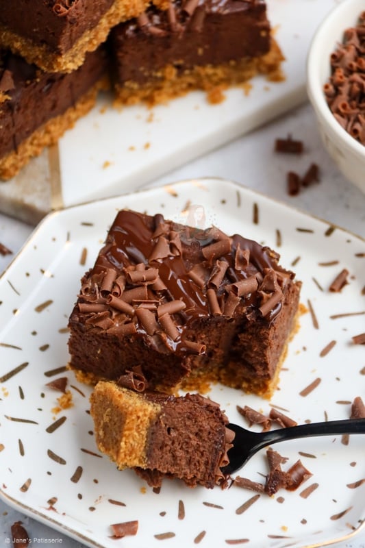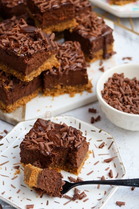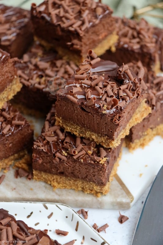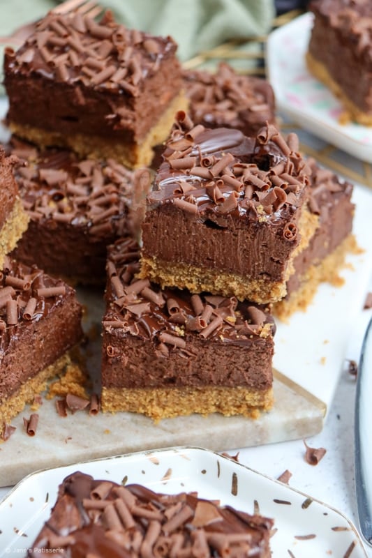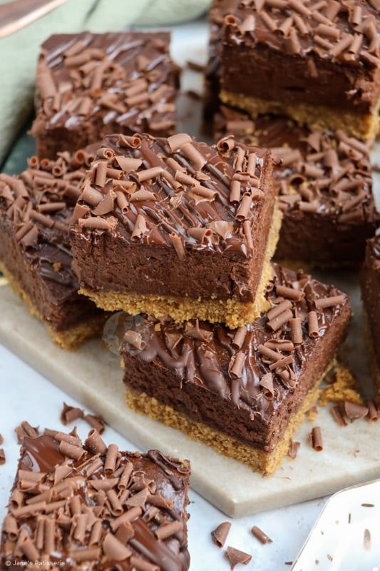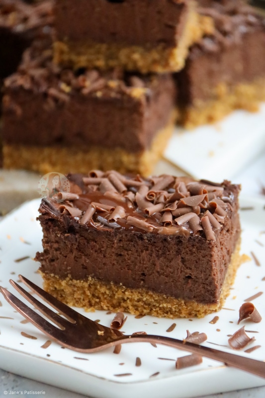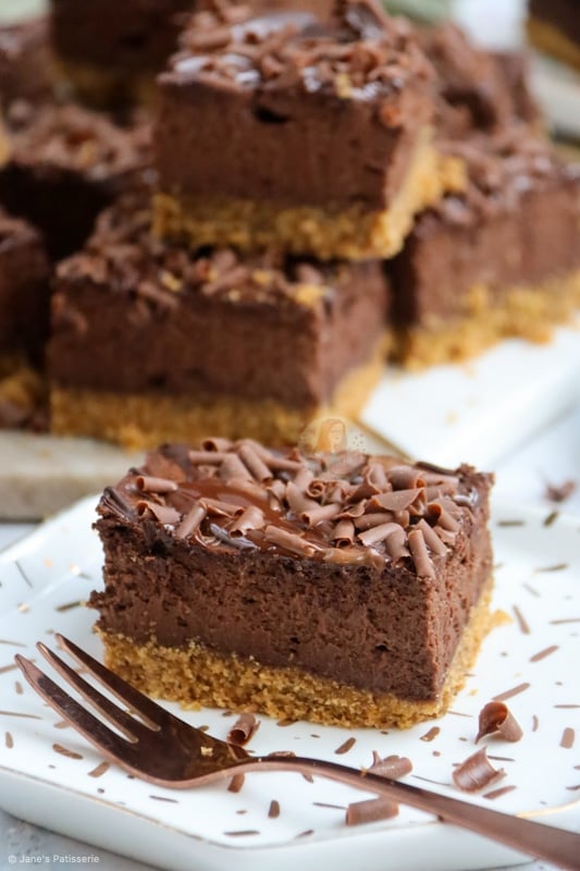 These chocolate cheesecake bars are rich, delicate, and absolutely and utterly scrumptious – enjoy them!! Jane x