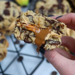 Always love your recipes! If I wanted to adapt these and make them into nyc cookies rather than sandwich ones, do you think I could freeze some caramel to put in the middle? (Similar to your biscoff stuffed ones) If so how much do you think I would need? (Assuming the same amount of cookie dough!
