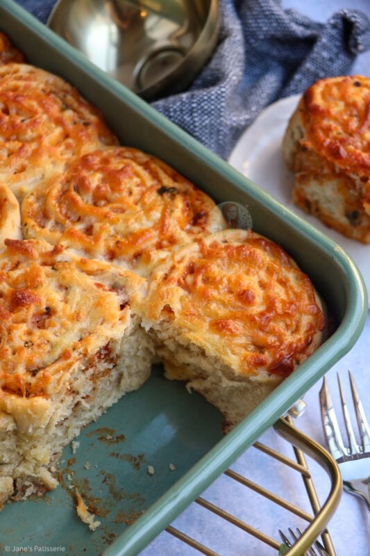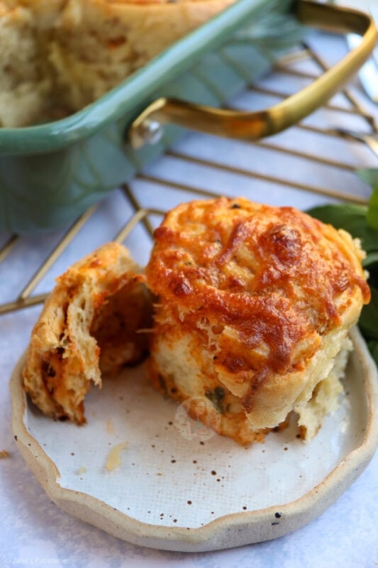 - Salt – This helps with the savoury element, but also the bake in general. I always add salt to my bread dough, and you should too! If you use salted butter though, skip adding any extra.