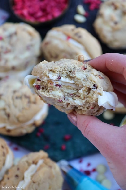 For these cookies I decided to only use freeze dried raspberries to make sure the cookie dough wasn’t too wet – you don’t need much and it really brings through the flavour of the raspberries!
