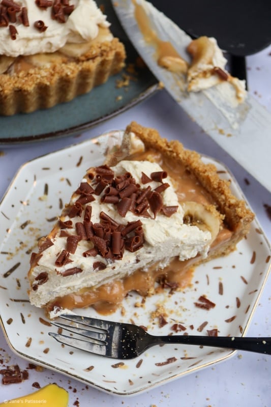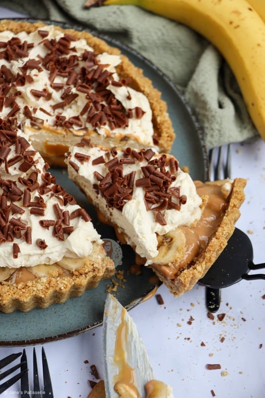 Hey Jane, I made your recipe for Christmas Day yesterday and it was seriously yummy. I added some instant espresso powder to the whipped cream as well which added a lovely contrast to the sweetness of everything else. Your homemade caramel tasted gorgeous and stayed firm in a jar in the fridge when I made it the night before. However, since putting it in the pie, it has stayed runny and will not firm up no matter how long it’s left to chill. I think it might be due to juices being released from the banana slices? Next time I would make individual tarts so that the caramel content doesn’t flow out of the large pie after slicing. Maybe I could change the length of time I cook the caramel in the first place to make it more solid and viscous.
