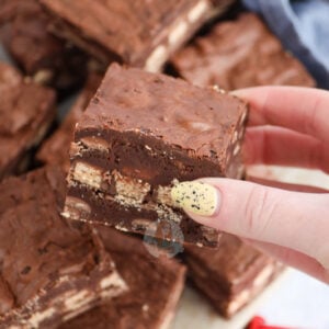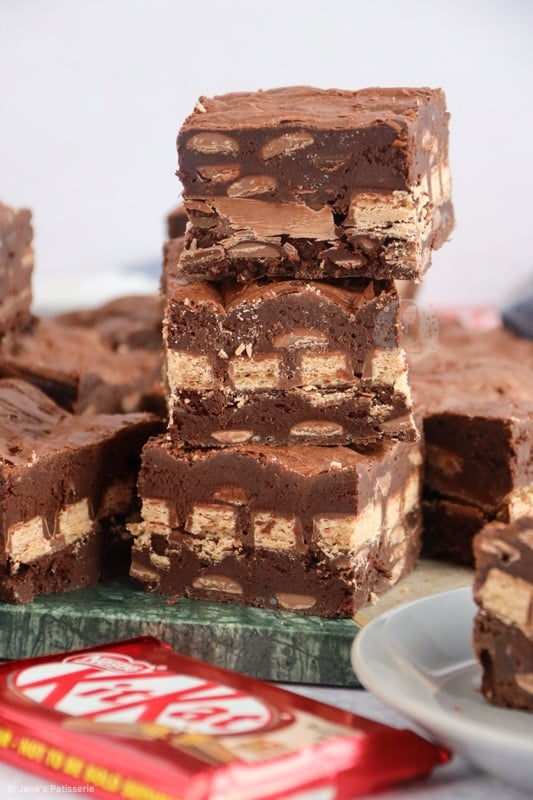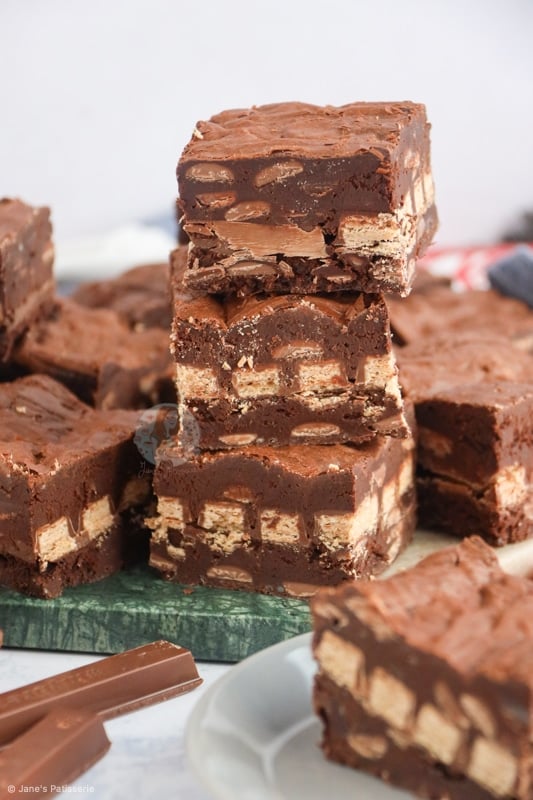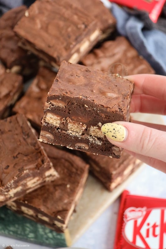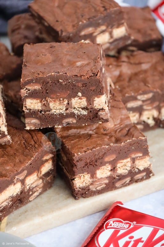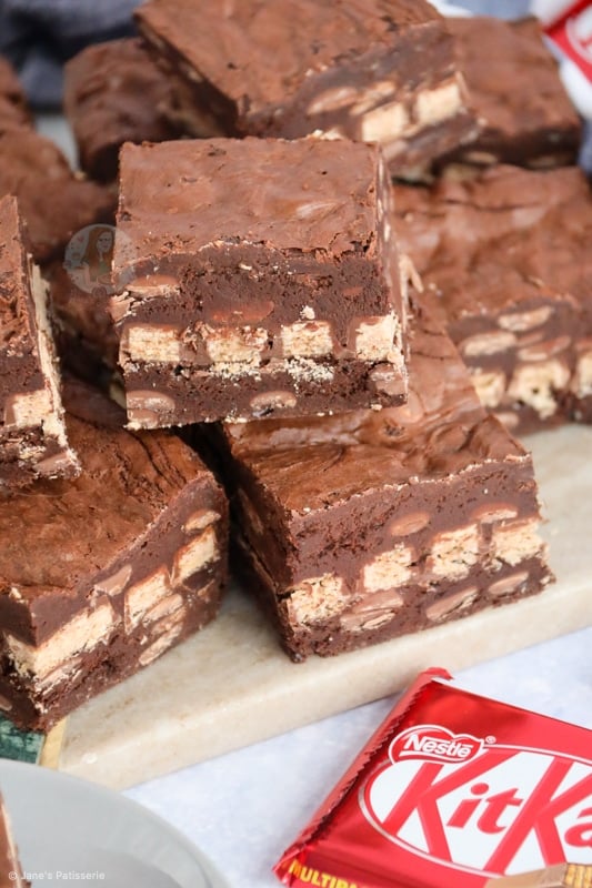 I was worried the brownies would be overdone as they didn’t wobble after the 25 minutes. However, they were lovely and gooey in the middle with a nice slight crinkled layer on top. They kept so well for a week and smelled divine! I loved the layer of KitKats which came through in each bite. Thank you so much for this recipe.