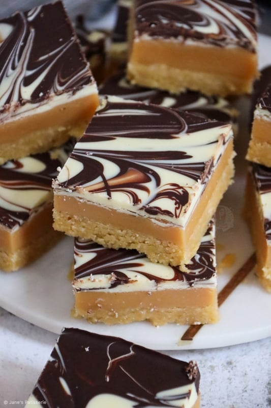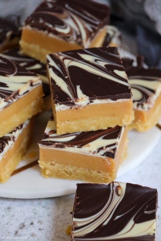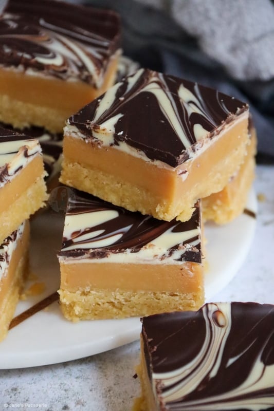 - **If you struggle to cut your shortbread and tray bakes without the chocolate cracking on top, set it at room temperature rather than in the fridge and it’ll be softer so therefore won’t crack when you cut it!