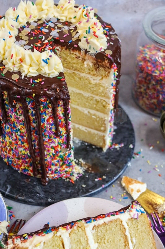 Because of this, I wanted to celebrate with one of the most highly request bakes of all time… a sprinkle cake. But honestly, I cannot thank you all enough. Thank you for making my dream a reality and supporting me every day. Thank you. Jane x