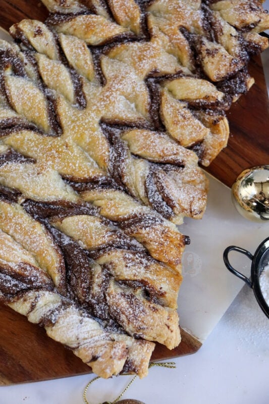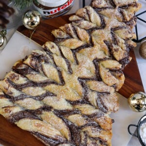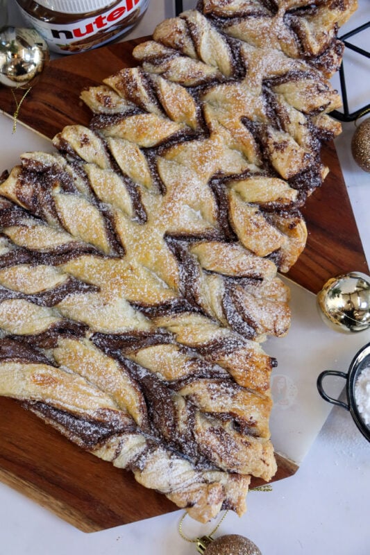 The puff pastry creates a wonderful texture to the Nutella Christmas tree, which you wouldn’t get from other types of pastry. I think shortcrust would be too crumbly and dry, compared to the light buttery texture of puff.