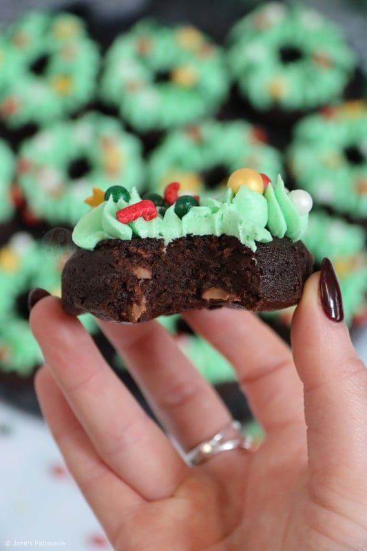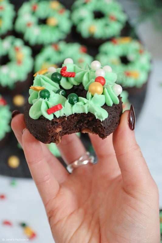 Say hello to the cutest little edible Christmas wreaths you fill find this festive season! They are sweet, super chocolatey, and yes, they are brownie doughnuts. HELLO!!