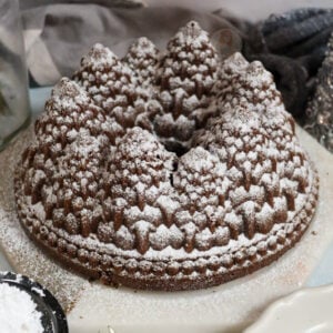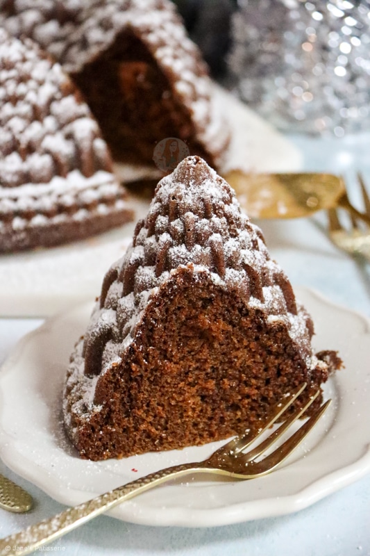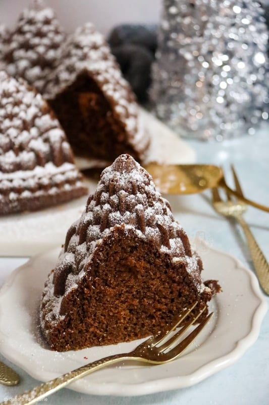An easy but beautiful gingerbread bundt cake with the most delicious warming sponge, dusted with icing sugar – perfect for the festive season.