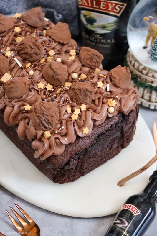 I have been asked over and over to do a baileys loaf cake, but I really wanted to level it up and make it out of this worldly. I went with the idea of a chocolate fudge cake and it worked spectacularly. There is just something different about chocolate fudge cakes that always wins.