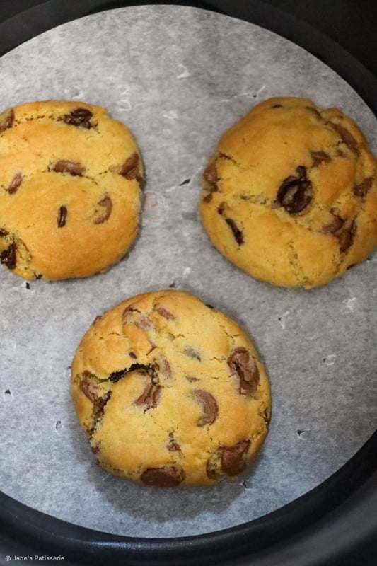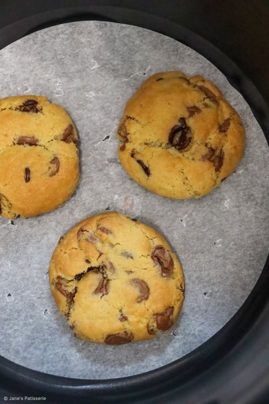- If you want to air fry NYC size cookies (120g) these take 13-14 minutes. See blog post for details.
