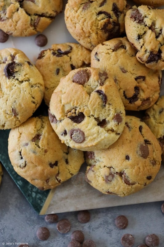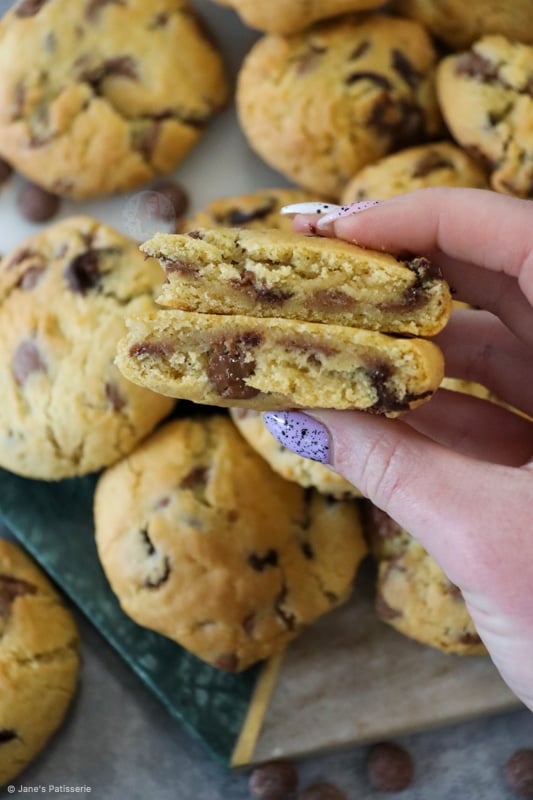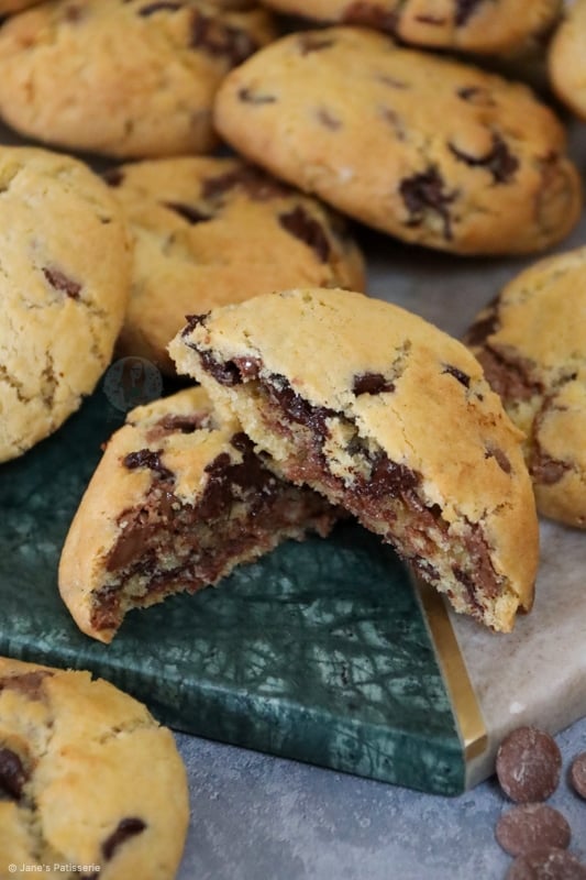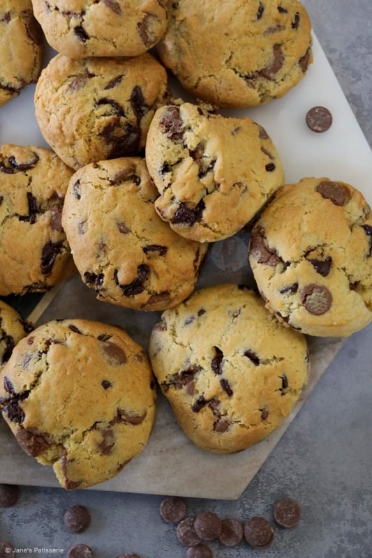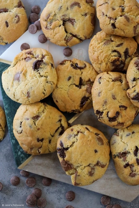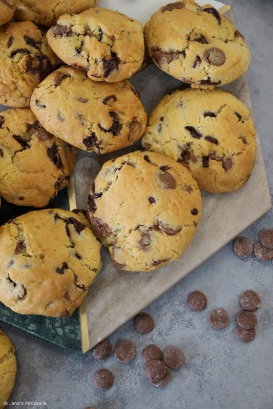 You can also freeze the rest of the cookie dough. The cookie dough freezes perfectly once scooped into the portions. I use a 5cm cookie scoop for my cookies, and they weigh about 50-60g each.