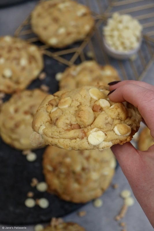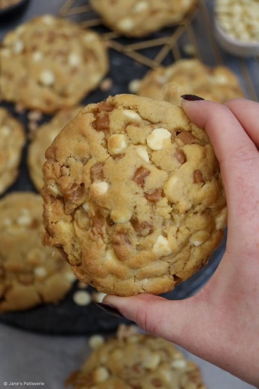 If you prefer chunks of chocolate you can 100% just chop up a bar of white chocolate and chop them up to the size you prefer, or you can use the shop bought chocolate chips which are often much smaller than the ones that I use.