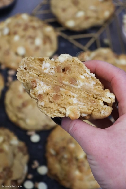 So the cookie dough for these white chocolate fudge NYC Cookies is the same as all the others… and can you really blame me?! It’s the best cookie dough out there!
