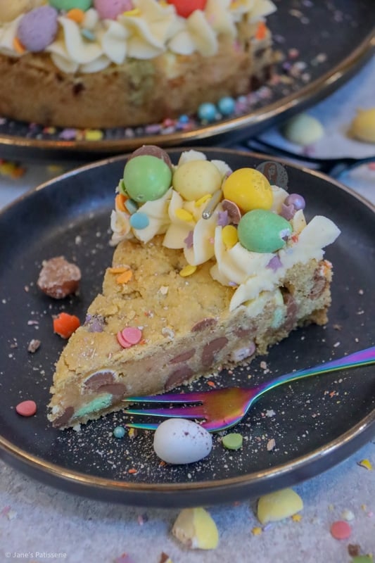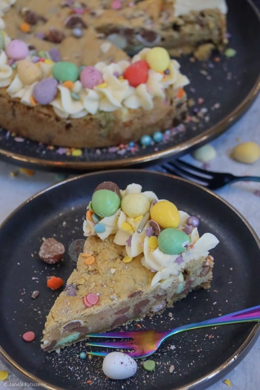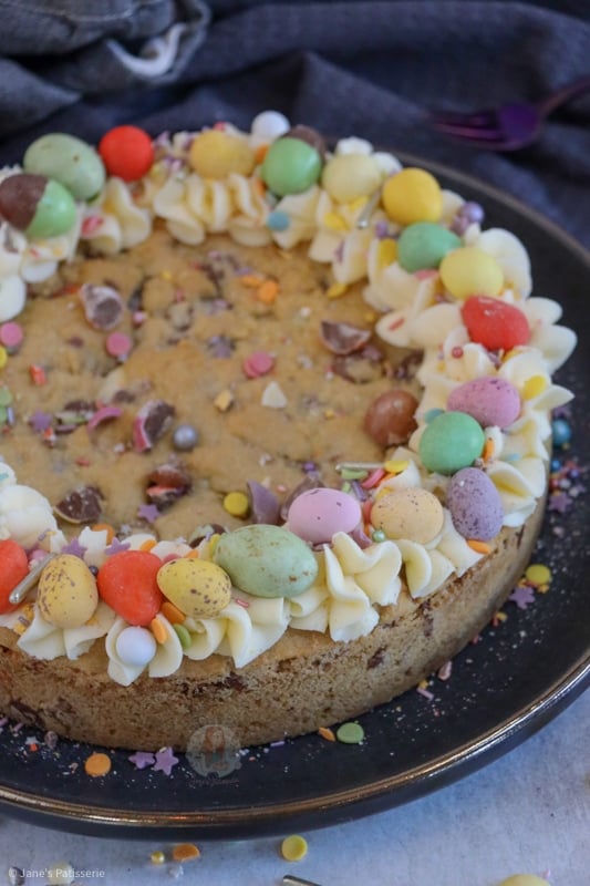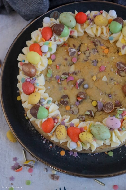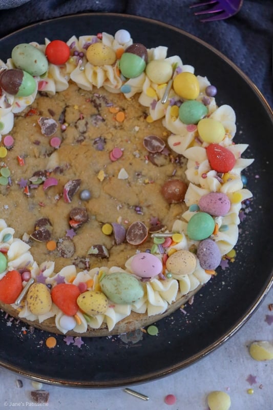 These giant cookies are great for occasions, such as Easter, as you can decorate them and they just look impressive. They are also incredibly easy to make – if you want to level it up more though, check out my mini egg cookie cake; thats two layers.