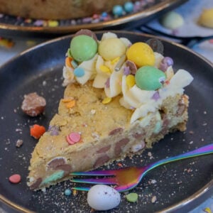 We all know I love an easter bake that I can basically stuff with as many easter chocolates as I want, and this is definitely another one of those recipes. I adore cookies, in all forms, and this giant easter cookie is just on another level!