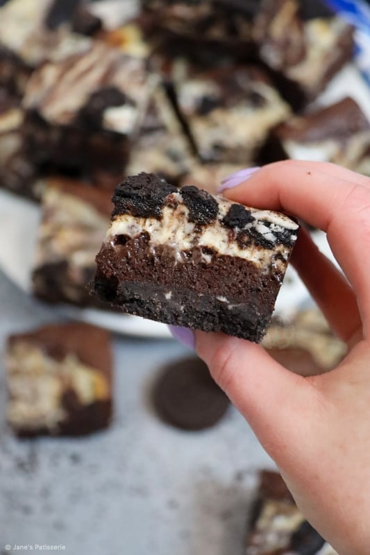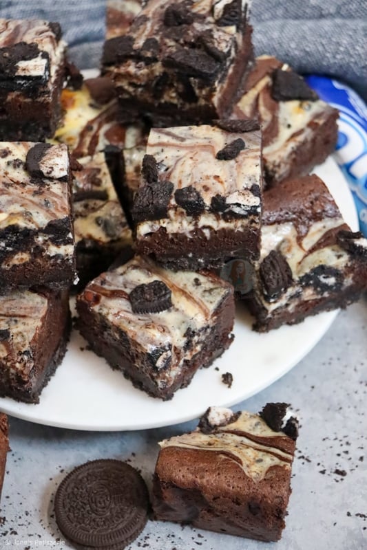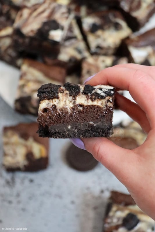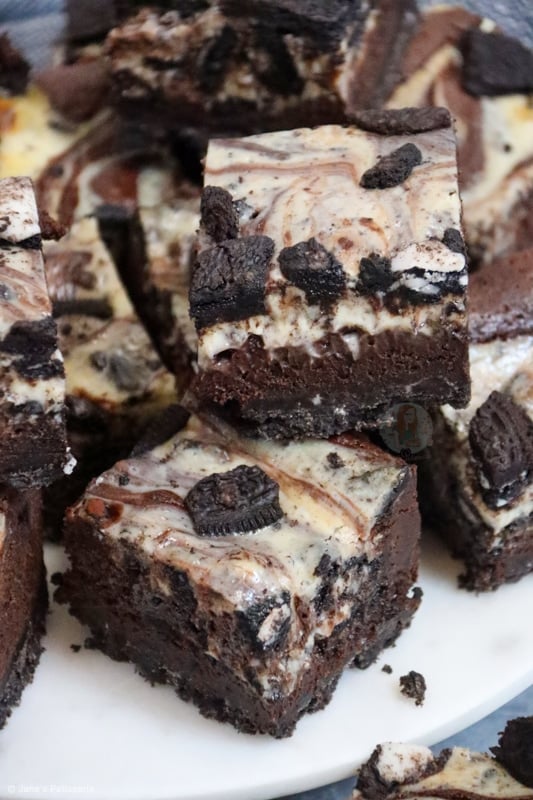 Out of this world Oreo Cheesecake brownies with an Oreo base, chocolate brownie with an Oreo cheesecake swirl… over the top but insane!