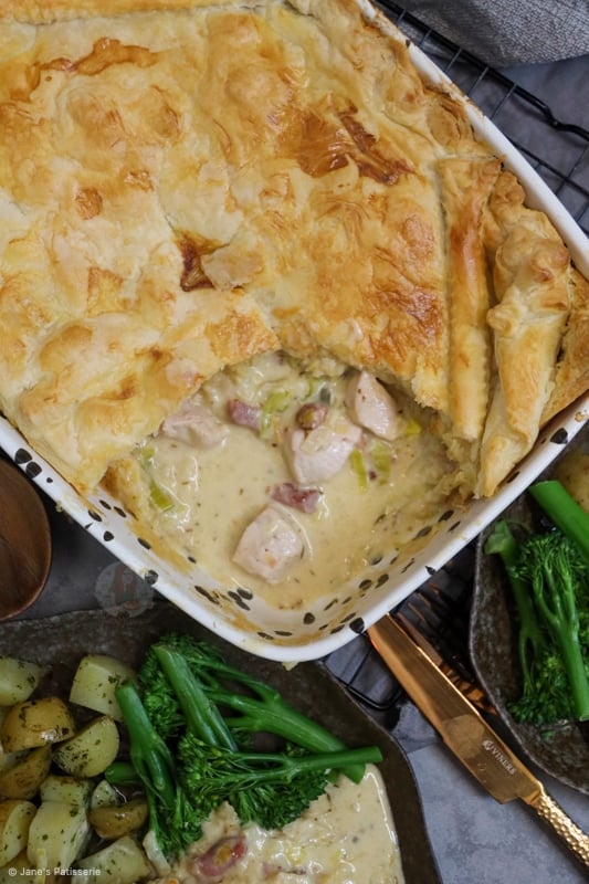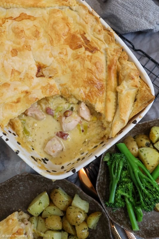 A delicious and comforting homemade chicken, leek & bacon pie which is an easy and perfect dinner idea for the family.