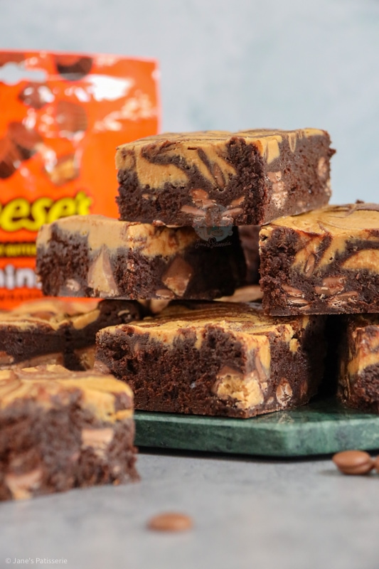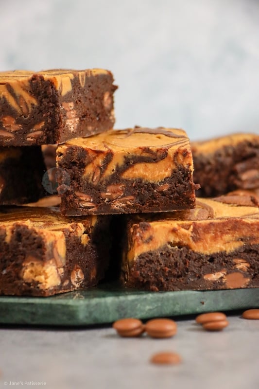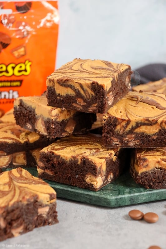 As these brownies are peanut butter themed, I thought the obvious route was to go along with the idea of my Biscoff Brownies, and swirl through some peanut butter. It’s a super easy way to get a delicious whack of peanut butter in every bite and I adore it.