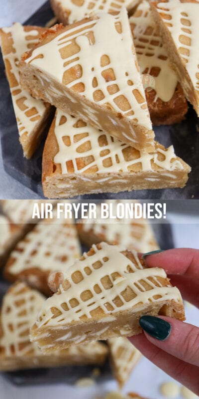 These beauties are a simple blondie that you can vary how you want, but just to prove that the blondies work perfectly in an air fryer, and they’re damn delicious.