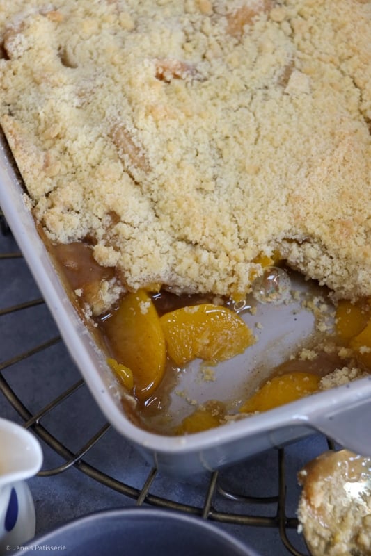 My raspberry crumble bars and my apple crumble ice cream are perfect summer bakes, but if you wanted a proper dessert during the summer months… this peach crumble is your answer.