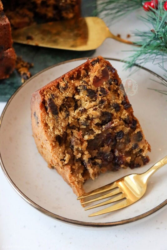 When it comes to the fruit of the Christmas cake, you can cater it more to what you prefer, but I used a broader amount as that’s what works best for my trusty taste testers, as it gives more flavour and textures. I use a combination of raisins, sultanas, currants, dried cranberries, glaze cherries, and mixed peel. The total weight is about 1075g worth of fruits, which is a lot – but you need a lot for a decent Christmas cake!