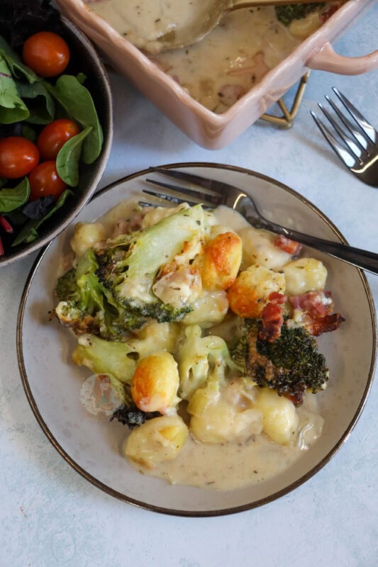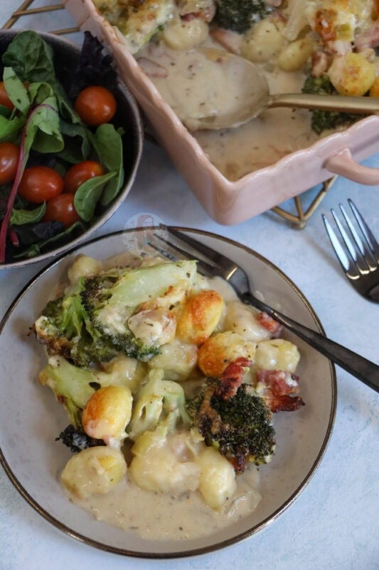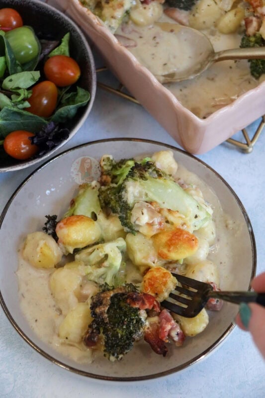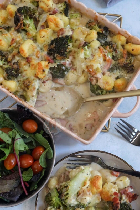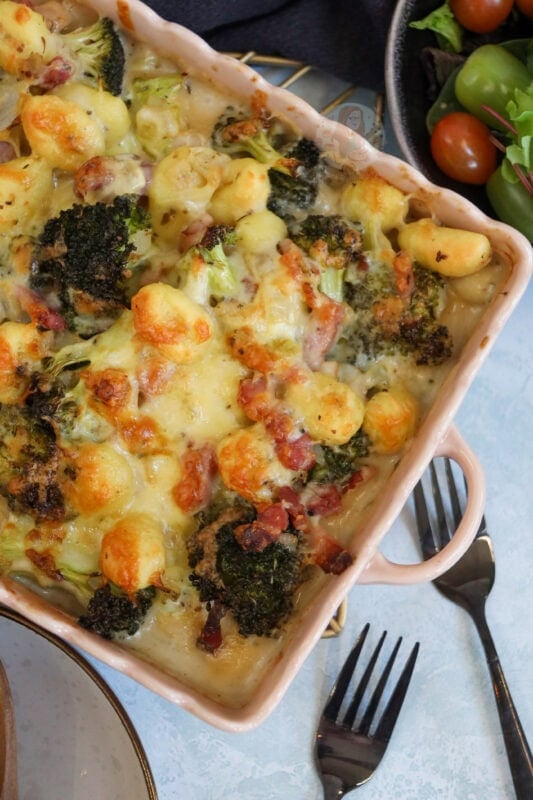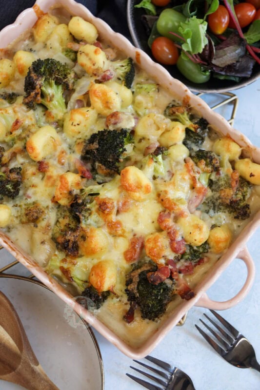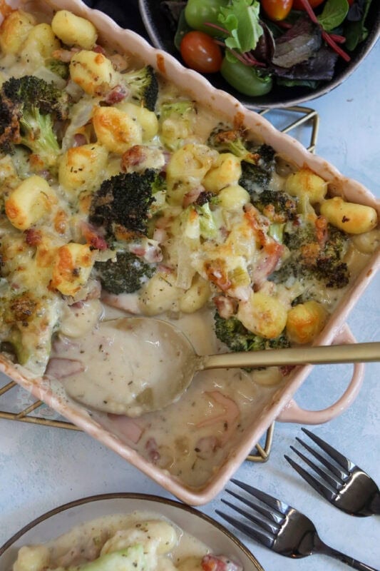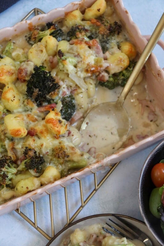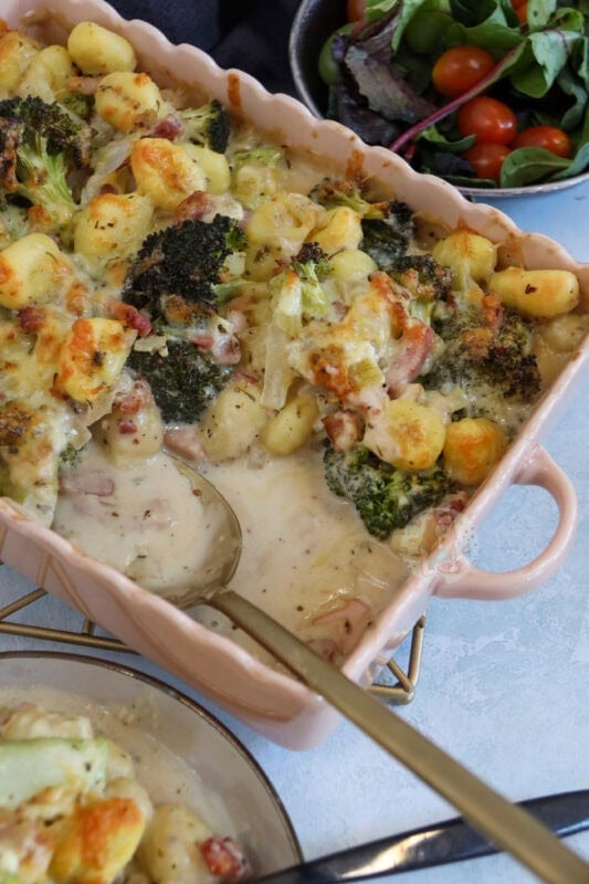 My bacon broccoli gnocchi bake is the best weeknight dinner idea that is so easy to throw together and so full of flavour