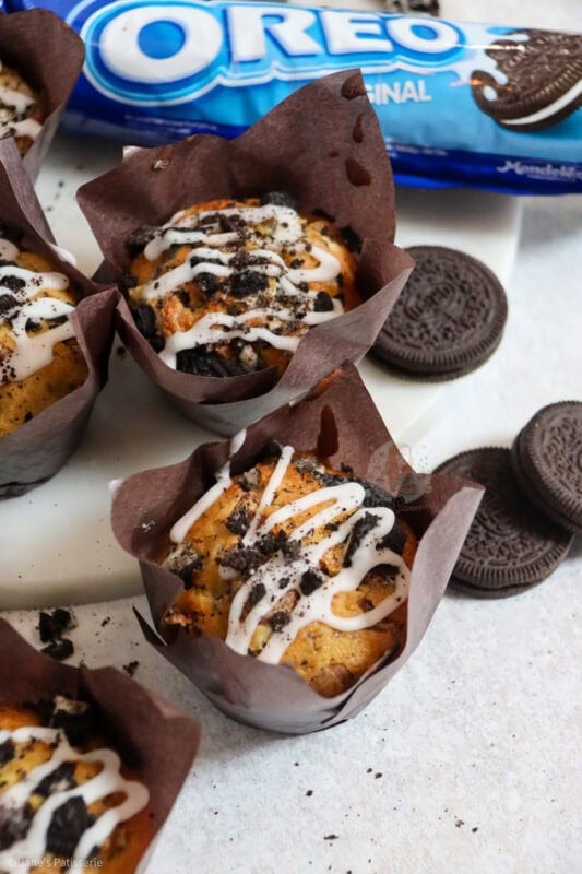 The balance of the flavour of the oreo biscuits themselves and the sweet vanilla like creme centre works no matter what you are putting the oreos inside of, and especially in these, it works SO well even on a deliciously basic bake.