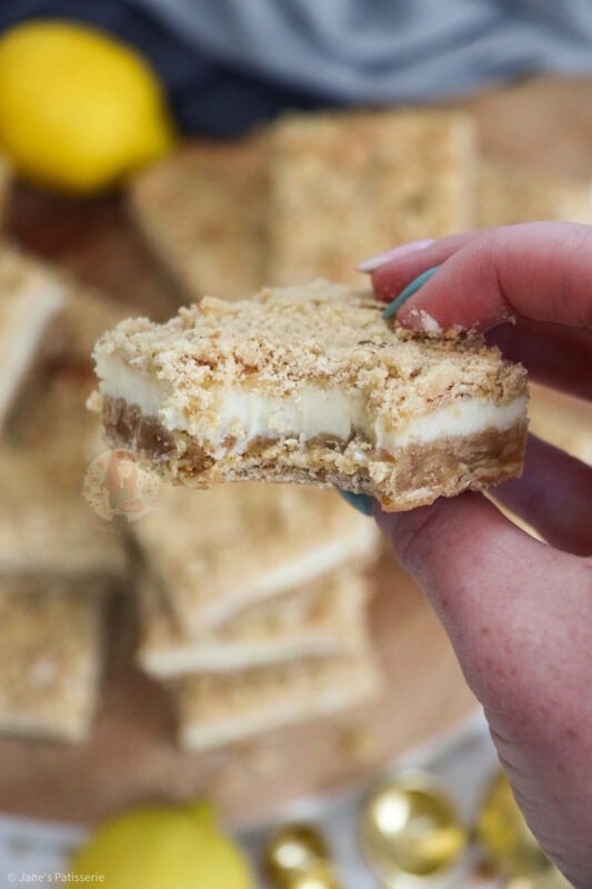 One of my most popular bakes of the more recent years is my raspberry crumble bars, and after the success of these coupled with the success of the earlier mentioned lemon bakes, I wanted to merge them all together to create a bake that would be even more popular – the lemon crumble bars.