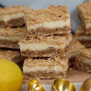 Sweet and zingy lemon crumble bars with an oat crumble base, lemon filling and oat crumble on top – easy and delicious