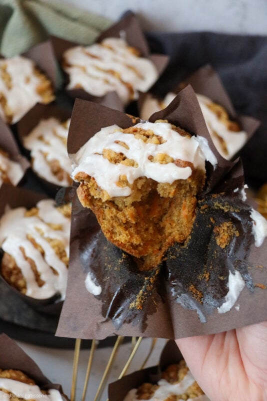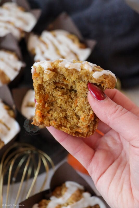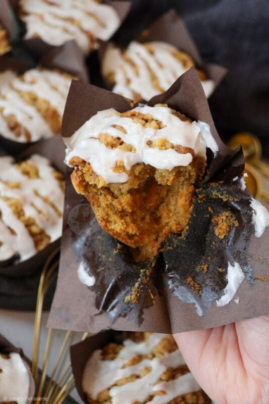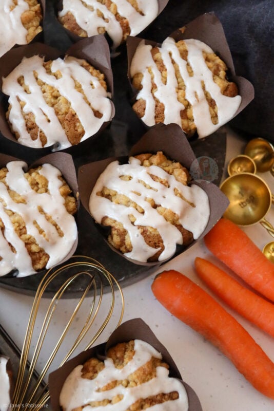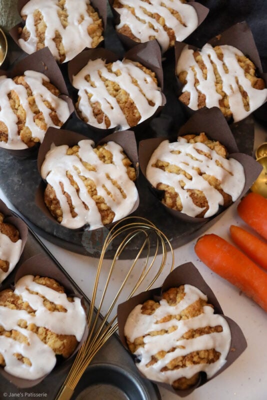 My carrot cake cupcakes are always a glorious bake, along with my carrot cake traybake, and even my carrot cake cheesecake – the obsession is real here. This made me want to do an even better version of a carrot cake, and make it muffin sized.