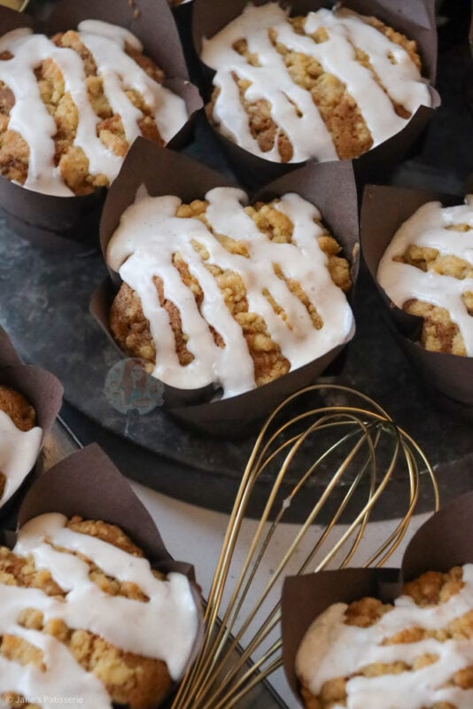 Definitely too much sodium bicarbonate as they have an aftertaste but otherwise really lovely. The crumble topping and icing drizzle are both fantastic.