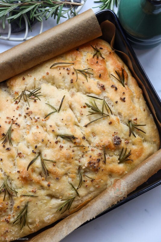I would always say it’s best to start making the focaccia the day before you want it. I always post a bread based recipe and people ask how to make it fresh for the following day, so this recipe is an overnight recipe anyway. There are ways to make it ‘same day’ but it can slightly change the texture or flavour profile.
