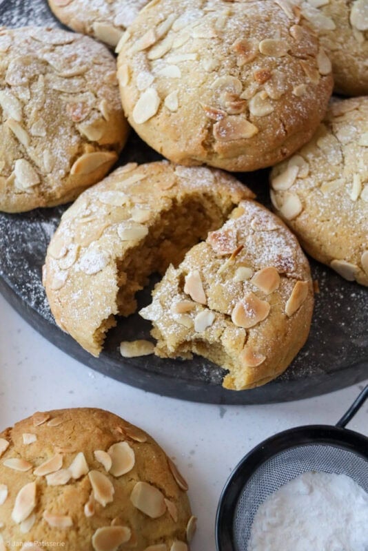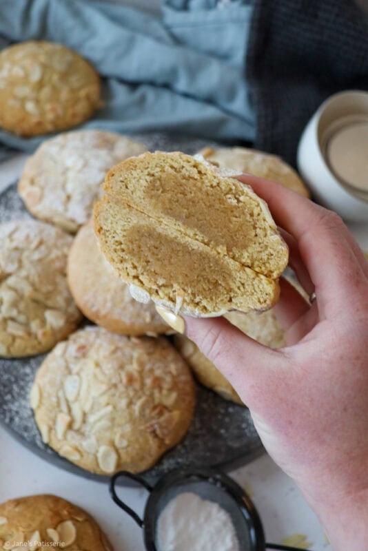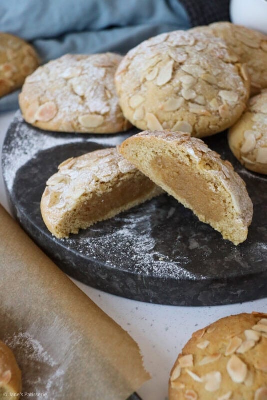 A combination of the viral almond croissants and my famous NYC cookies into one bake – almond frangipane stuffed NYC cookies!