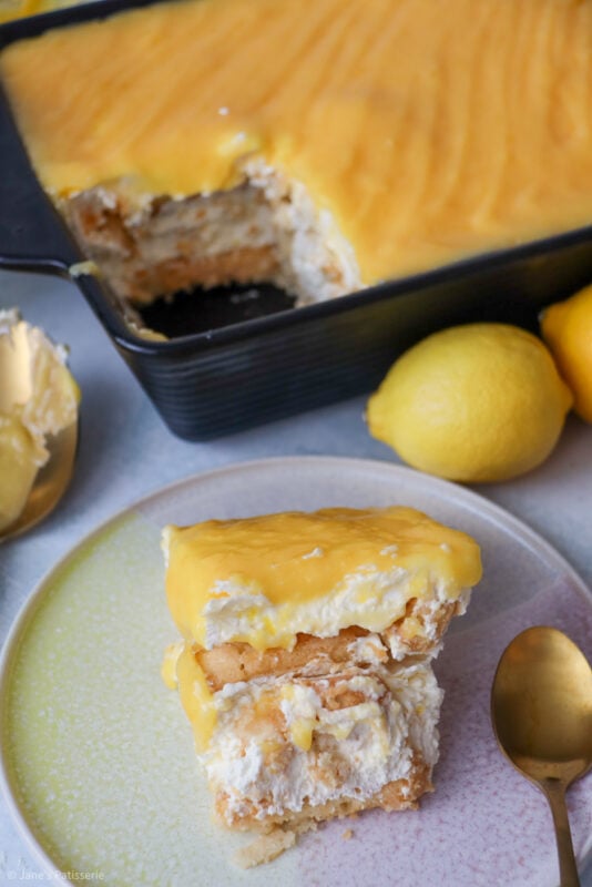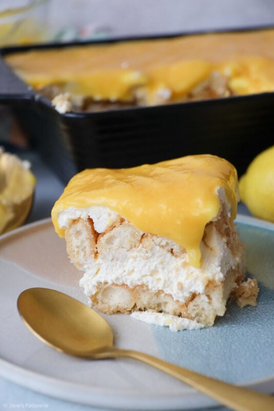 A simple and zingy lemon tiramisu with a homemade lemon curd, lemon soaked sponges and lemon mascarpone filling