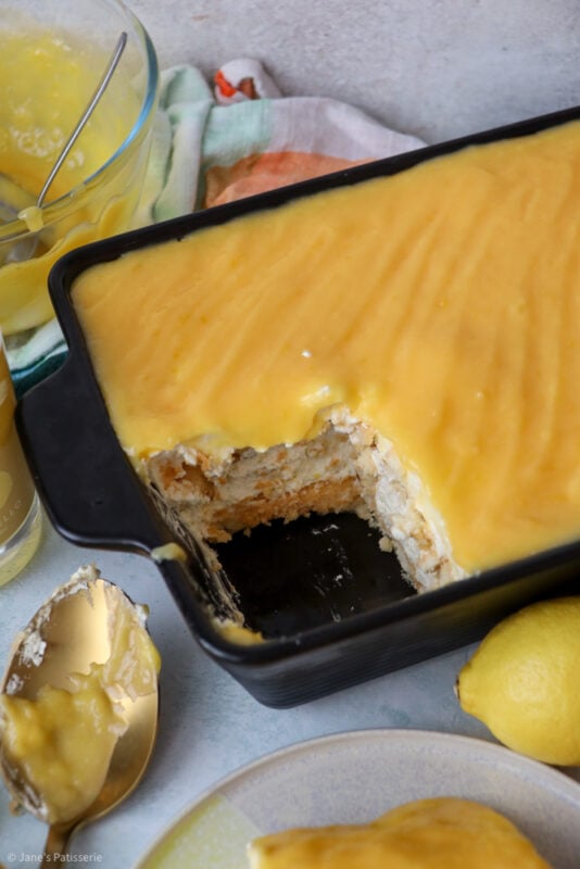 It’s then a bit of a patience required moment to let the layers set in the fridge, and to firm up (like a cheesecake), but then you can devour this wonderful lemon tiramisu