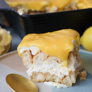 This lemon tiramisu has a zingy homemade lemon curd, lemon syrup soaked sponge fingers, and a light sweetened mascarpone cream.. it’s zesty, creamy and utterly delicious.
