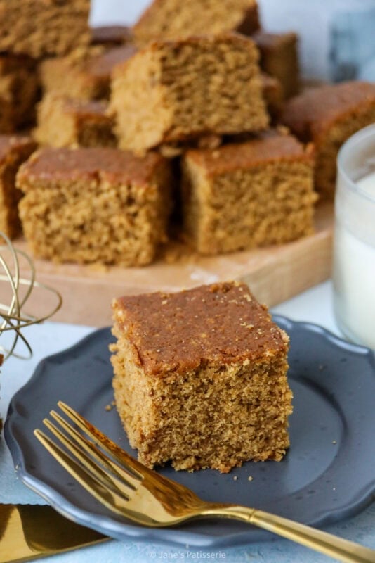 Parkin is closely associated with Bonfire Night in the UK, but for me it’s really a true autumnal recipe that I just adore. It’s amazing served as it is on its own, but I can’t resist a pouring of custard with mine because I just love custard.