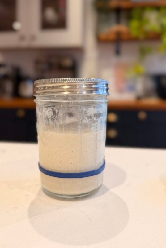 By day nine, my starter had doubled in volume within six hours for the third day in a row. That consistency meant it was strong enough for a test bake. (Watch my how-to video here for day nine)